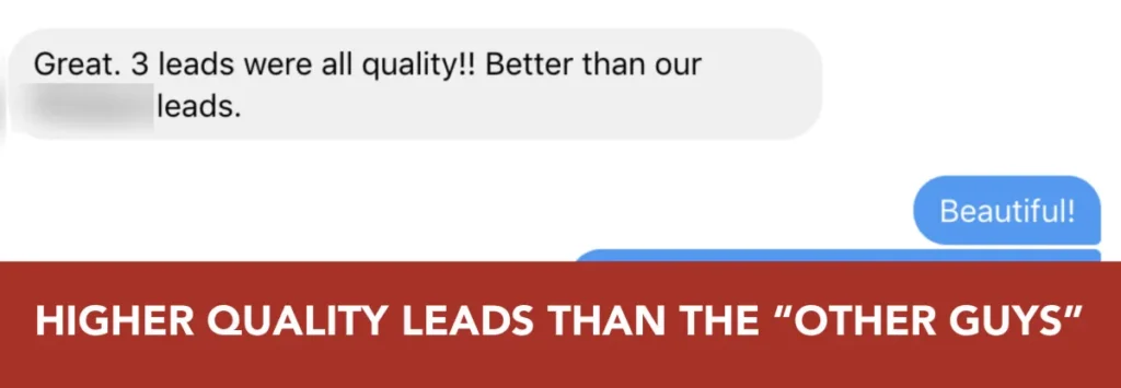 Look at messages from our clients getting leads every single day from our marketing channels we built for them.